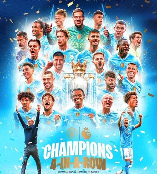 FOUR-IN-A-ROW: Pep Guardiola’s Manchester City have been crowned Premier League champions for a record fourth season
